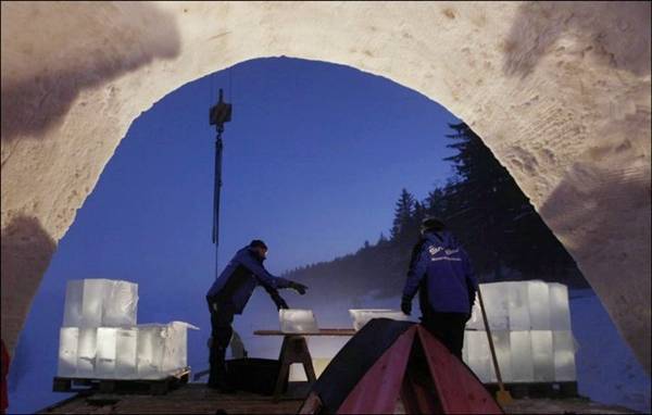 Not far from the German-Czech border, the Catholic Church is built of ice and snow.